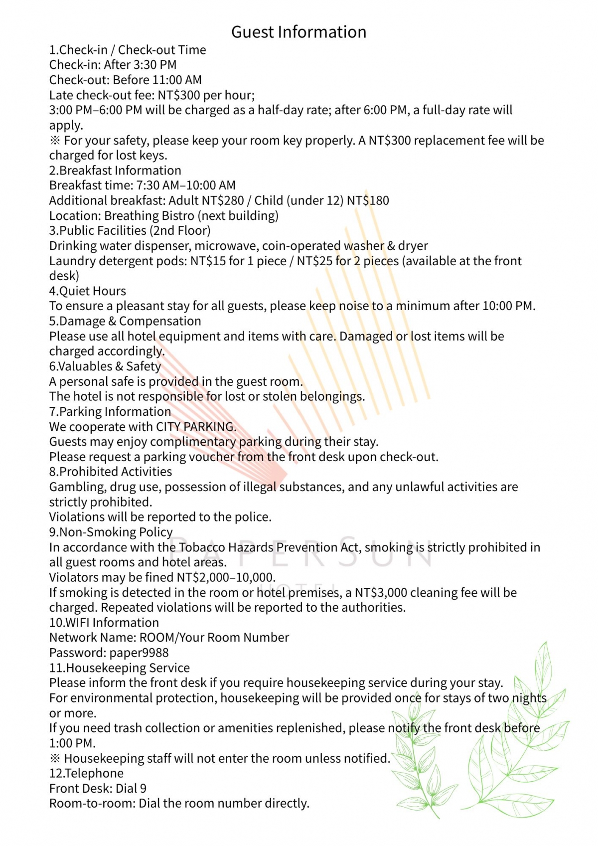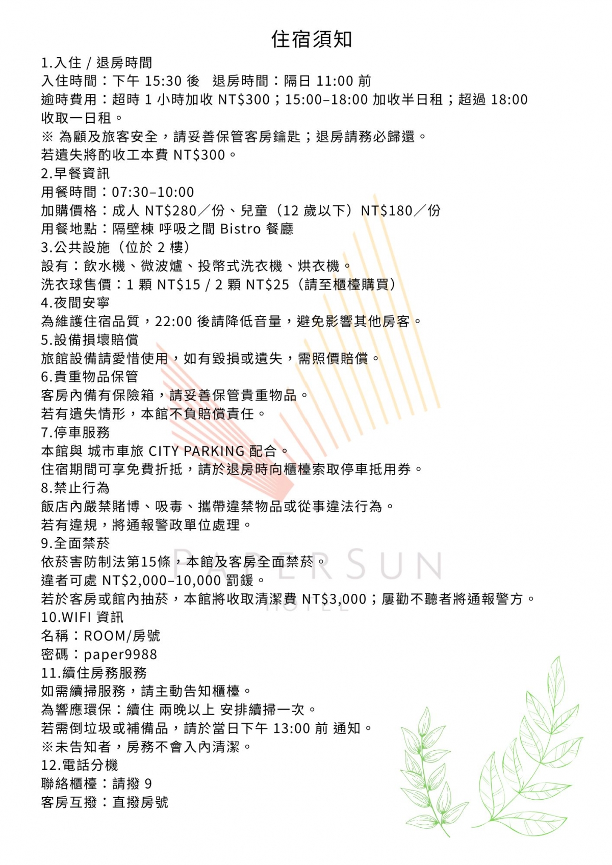 住宿需知