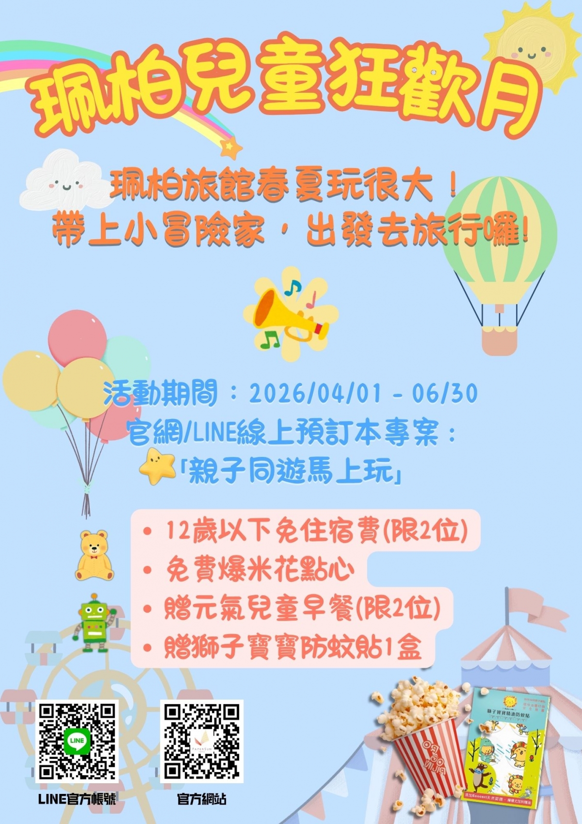 今年 4 月到 6 月,珮柏旅館要把小朋友寵上天!